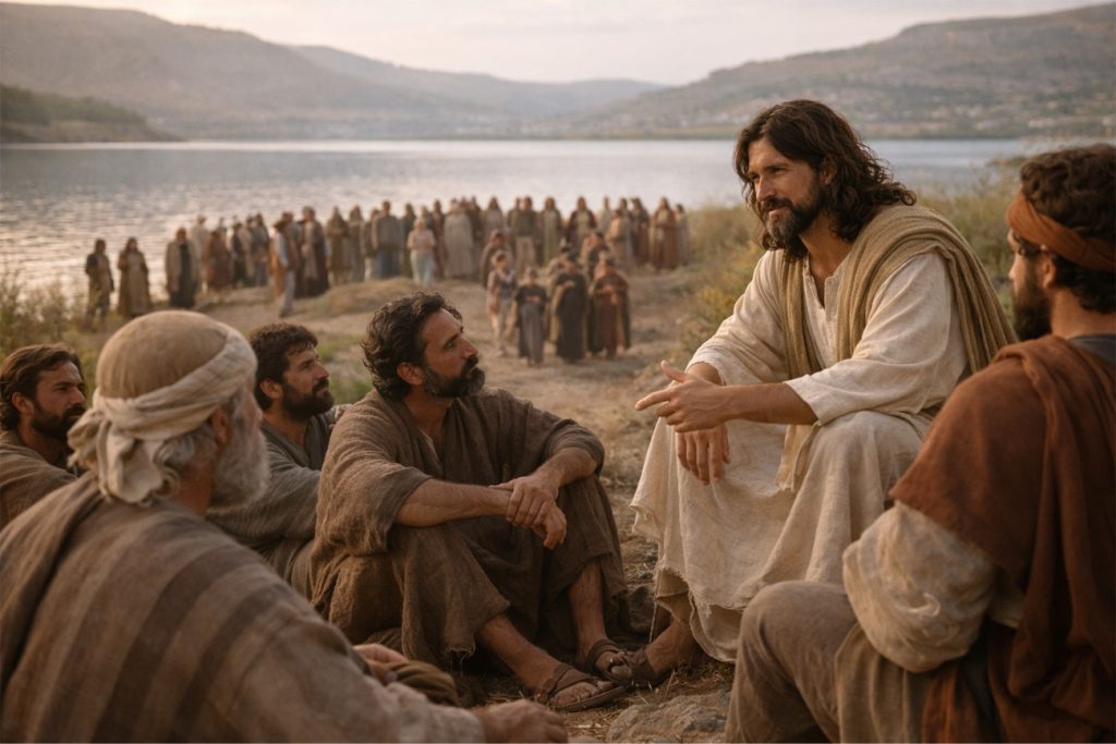 Jesús comienza a enseñarles con calma. No grita, no humilla, no impone. Enseña desde la cercanía. En la parroquia, enseñar es acompañar procesos lentos: explicar una vez más, escuchar dudas repetidas, caminar con quienes avanzan despacio. En la familia y en la comunidad, enseñar es vivir de manera coherente. La gente reconoce cuando las palabras nacen de una vida entregada. Jesús enseña porque primero ha mirado, ha comprendido y ha amado.